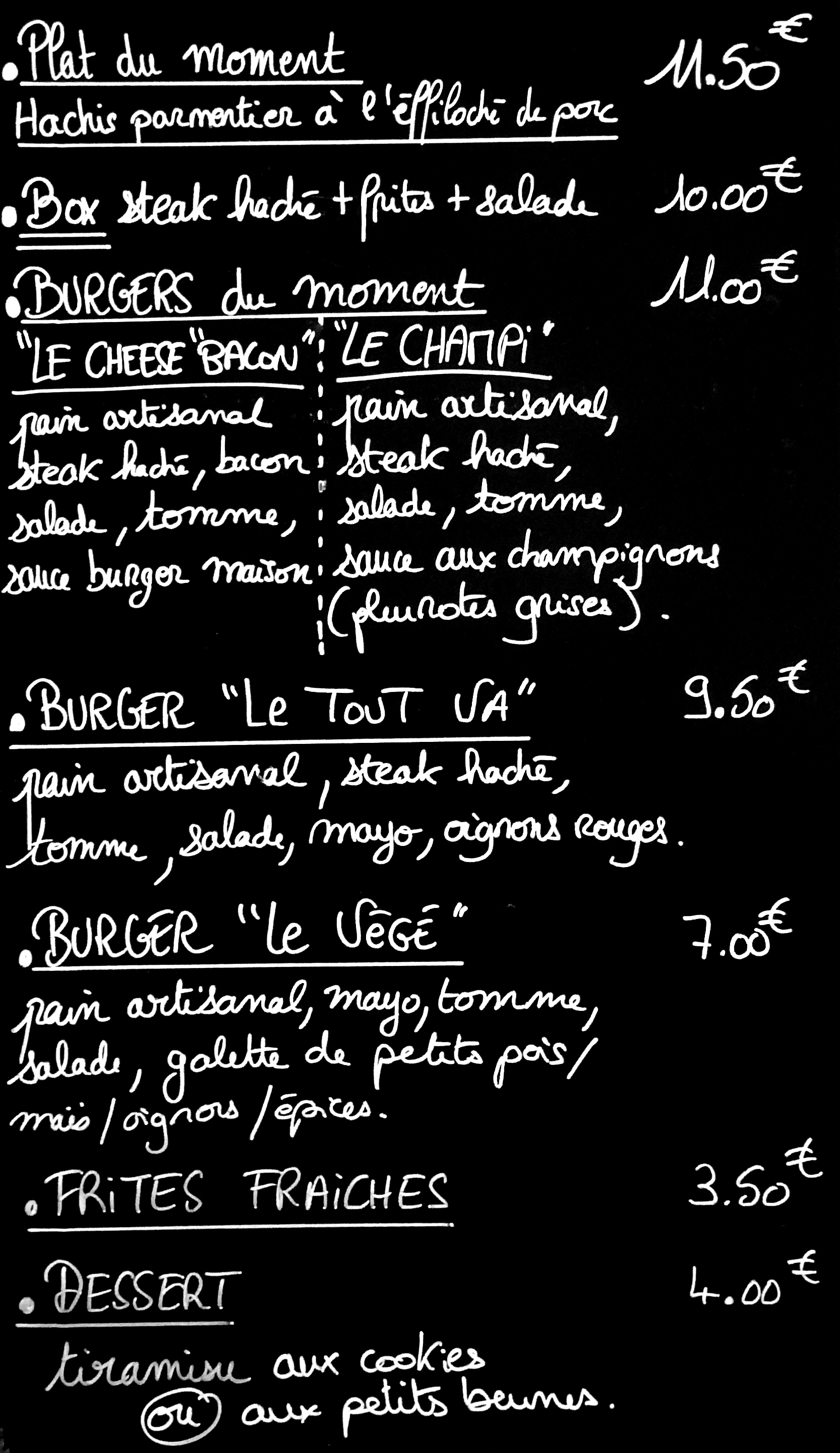 • le burger "le tout va"qui restera à la carte
